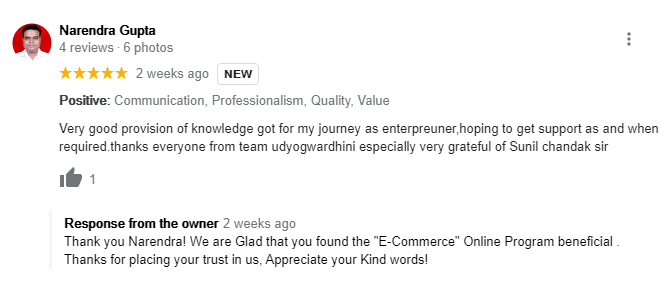 Meet our EDP participant Mr. Rohit Wagh from Ozar Nashik. He has a supermarket named Wagh & Sons supermarket. Initially, he had a grocery store in 2014. But he always wanted to do something more. Therefore, he joined Udyogwardhini's Entrepreneurship Development program. He learned about how to start & develop a business. He loved our brainstorming session in EDP. He still believes that joining Udyogwardhini has helped him a lot. He thanks Udyogwardhini for his success.