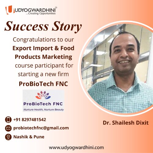 We are excited to share that one of our Export Import & Food Products Marketing course participants has started a new company, ProBioTech FNC. This is a big achievement, and we congratulate them on their hard work. We wish them all the best as they begin this new journey!