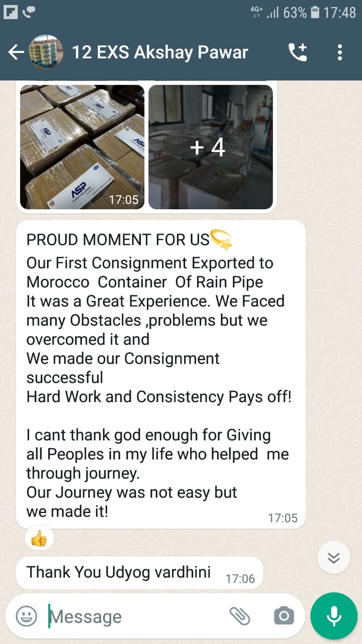 Mr. Aher is the CEO of TNX EXIM Pvt Ltd. His first export container of onion was exported to Qatar in 2009, and today Tushar has a turnover of crores in the import-export sector. He had to face many hardships to reach where he is today. He joined Udyogwardhini's Entrepreneurship Development Program in 1998. This helped him channelize his energy in the right direction and fix his business goals. Since then he has exported various Indian goods to UAE (Dubai, Abu Dhabi, Saraja), Oman (Masqat, Sala)