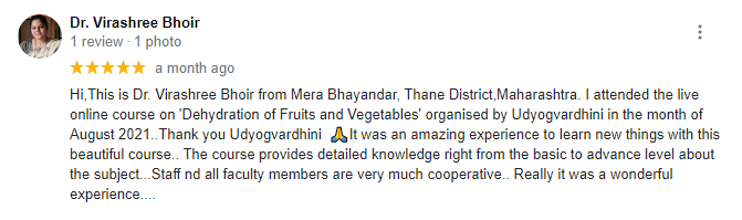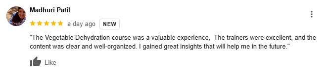 Congratulations to Kirti Jaikhedkar, a participant in our Fruit & Vegetable Dehydration & Spice Processing Online Course! She has successfully launched her new venture, "Sadguru Food Processing," using the skills she learned in the course, including dehydration techniques and quality standards. We wish her all the best in this exciting journey!
