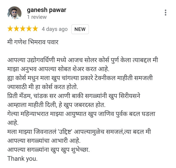 Kishor is an experienced engineer who worked in India & abroad after his education. He always wanted to start his own enterprise. Due to the lack of knowledge regarding entrepreneurship, he was not able to start anything. He came to know about our entrepreneurship development program and he joined it. After successful completion of the course, he started installation work of solar rooftop systems. He started his business in his residence only, but now he's getting very good orders from the mark