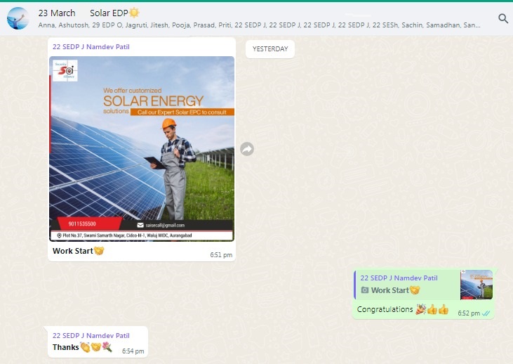A) Renewable energy sources like Solar are sustainable and have the potential to meet current and future global energy needs without any impact on the environment. Solar energy is a promising renewable energy source that has the potential to not only supply most of the world's electricity needs but also to solve global environmental problems. As of 30 June 2020, India's solar installed capacity has reached 35.12 GW. Investment and innovation in solar energy are essential and will not occur unless developers, investors, and entrepreneurs see the industry as an attractive alternative. Keeping in mind the concept of environmental sustainability, Udyogwardhini aims to develop and contribute to creating entrepreneurs in the solar industry thereby creating green solutions using solar energy for a pollution-free and developed India.