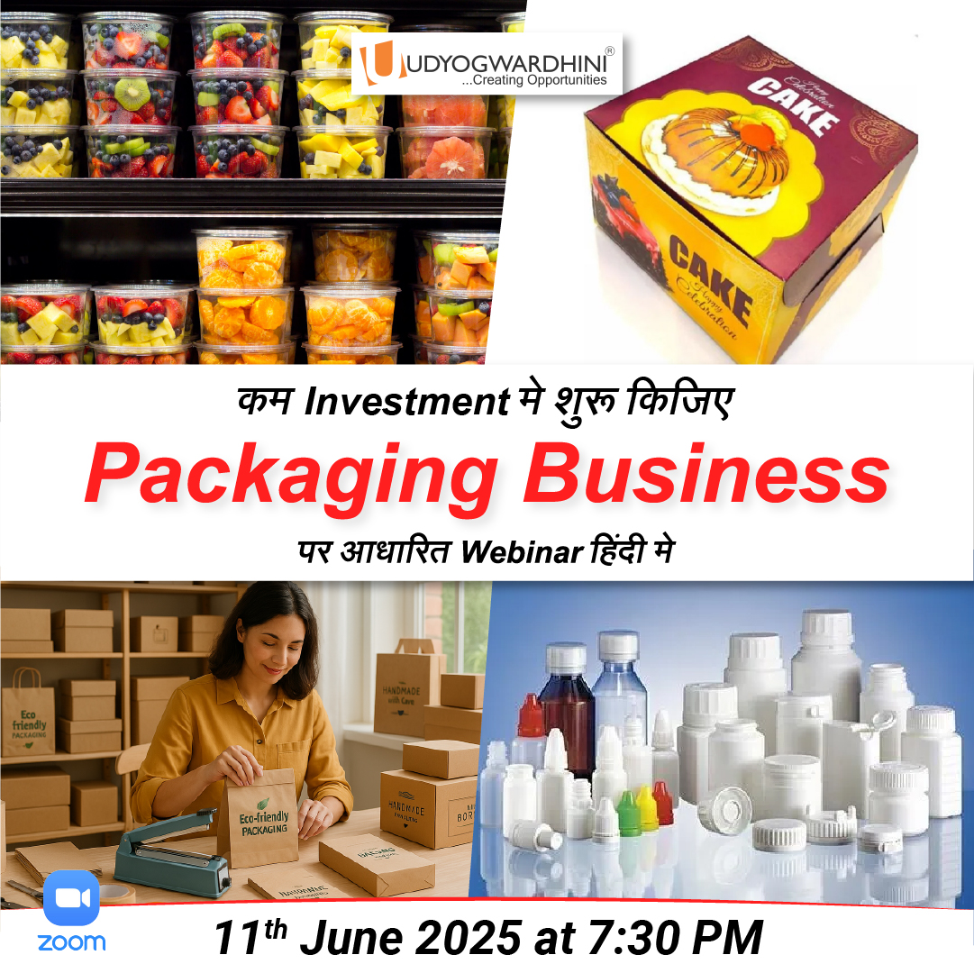 16 लाख करोड़ की Packaging Industry हर साल 26% Grow हो रही है! घर से लेकर Industrial Level पर, Packaging Business के Potential को जानने के लिए Webinar में Register करें!