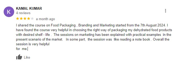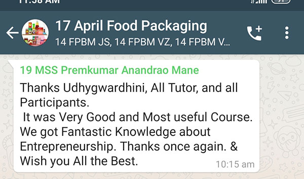 A) We will provide a access to community of entrepreneurs of food sector & also our mentors will guide you after training also.