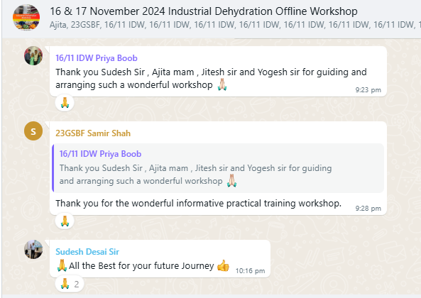 - 5:00 - 7:00 pm: Dehydrated products quality check, understanding plant layout & machinery setup, product costing, margins, profit calculations, vendor selection, products packaging, labelin